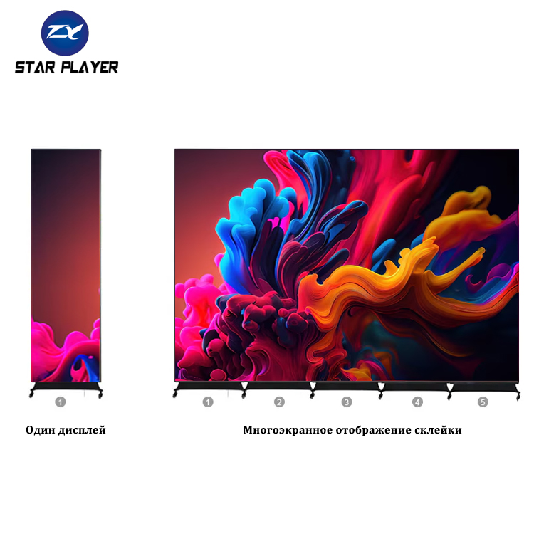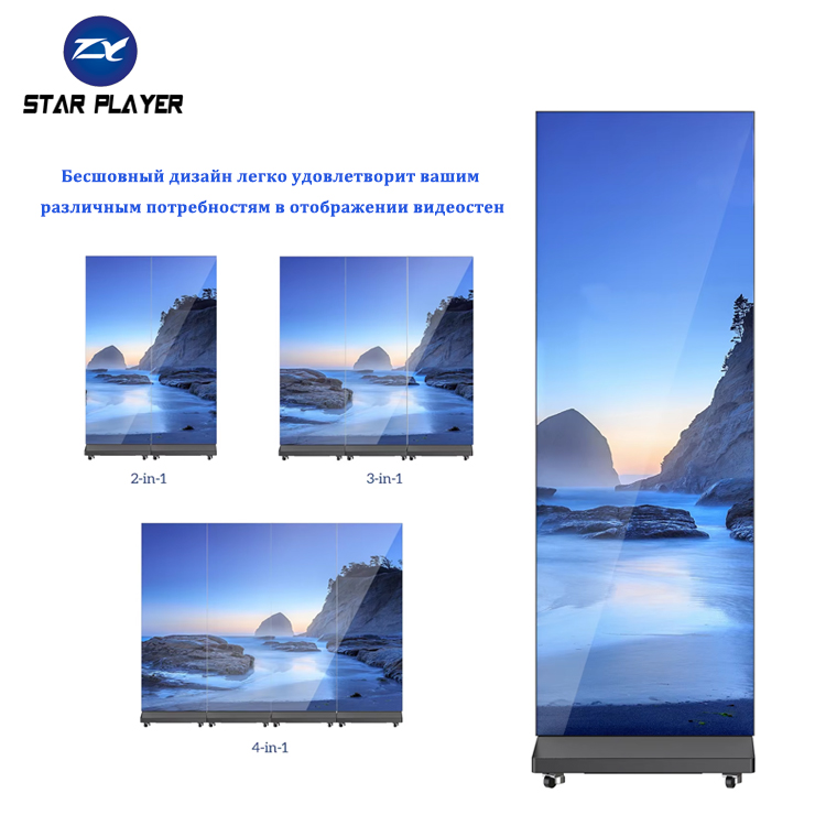 Складной светодиодный экран для постеров обеспечивает стабильно высокое разрешение и насыщенность изображения, характерные для светодиодных дисплеев, при этом значительно уменьшая общую толщину и вес. Одно устройство легко транспортировать, а несколько устройств можно быстро и легко соединить вместе, что позволяет создавать изображения различных размеров и форм.