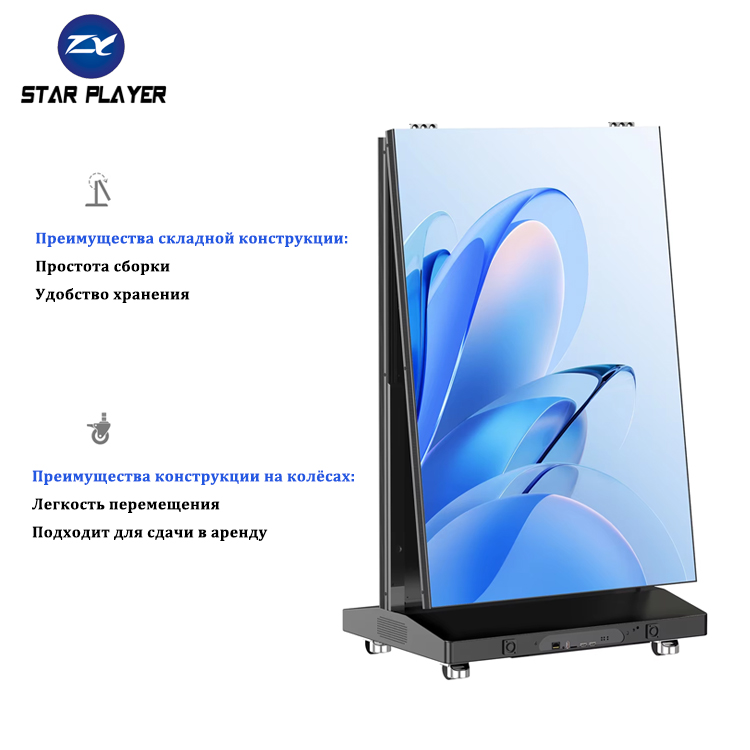 Этот продукт, восходящая звезда светодиодной индустрии – складной светодиодный электронный постер – как следует из названия, представляет собой гибкий складной светодиодный экран для постеров. Он не только обладает преимуществами традиционных светодиодных экранов – высокой яркостью, высоким разрешением и насыщенными цветами – но и значительно повышает портативность и гибкость.